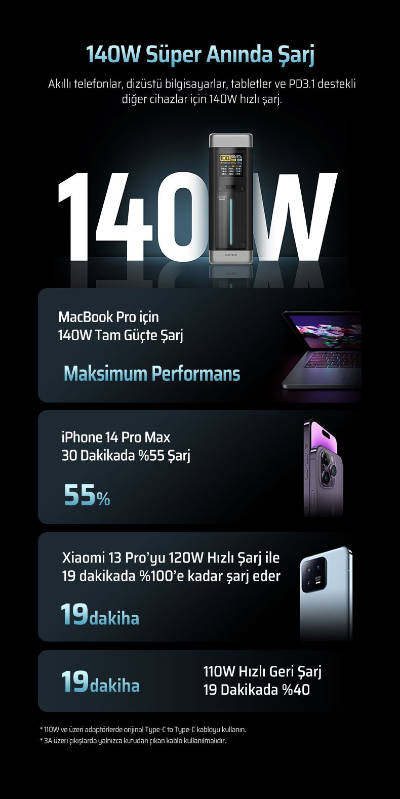gibi cihazları yüksek hızda şarj eder.